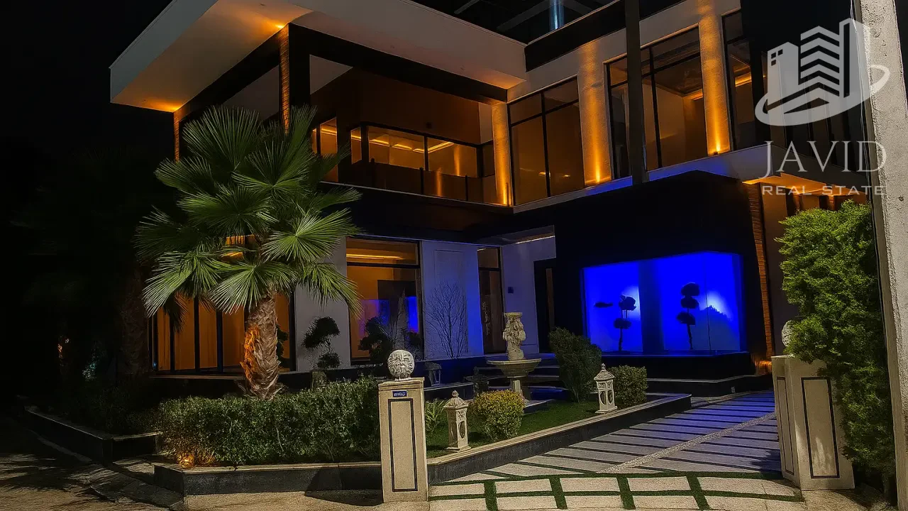 ۴۰۰ متر زمین و ۵۱۰ متر بنای مهندسیساز با متریال برند، طراحی مدرن و نورپردازی خارقالعاده.