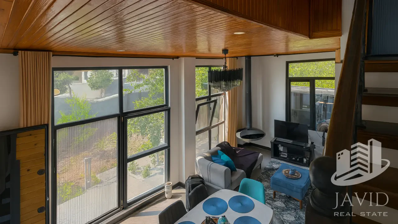 دارای ۳ خواب (یک خواب مستر پایین)، حمام و سرویس فرنگی طبقه بالا، ویوی زیبای دریاچه و پنجرههای دوجداره جدید.