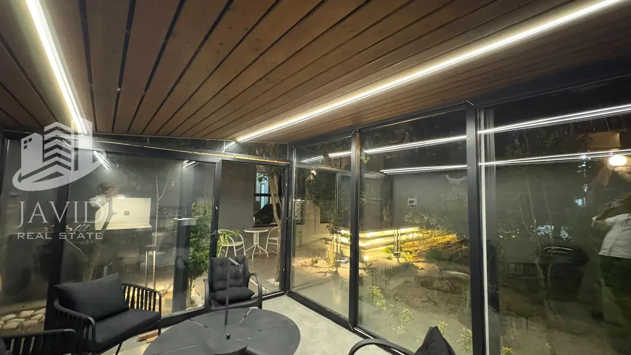 • آلاچیق شیشهای با درب ریلی آلومینیومی